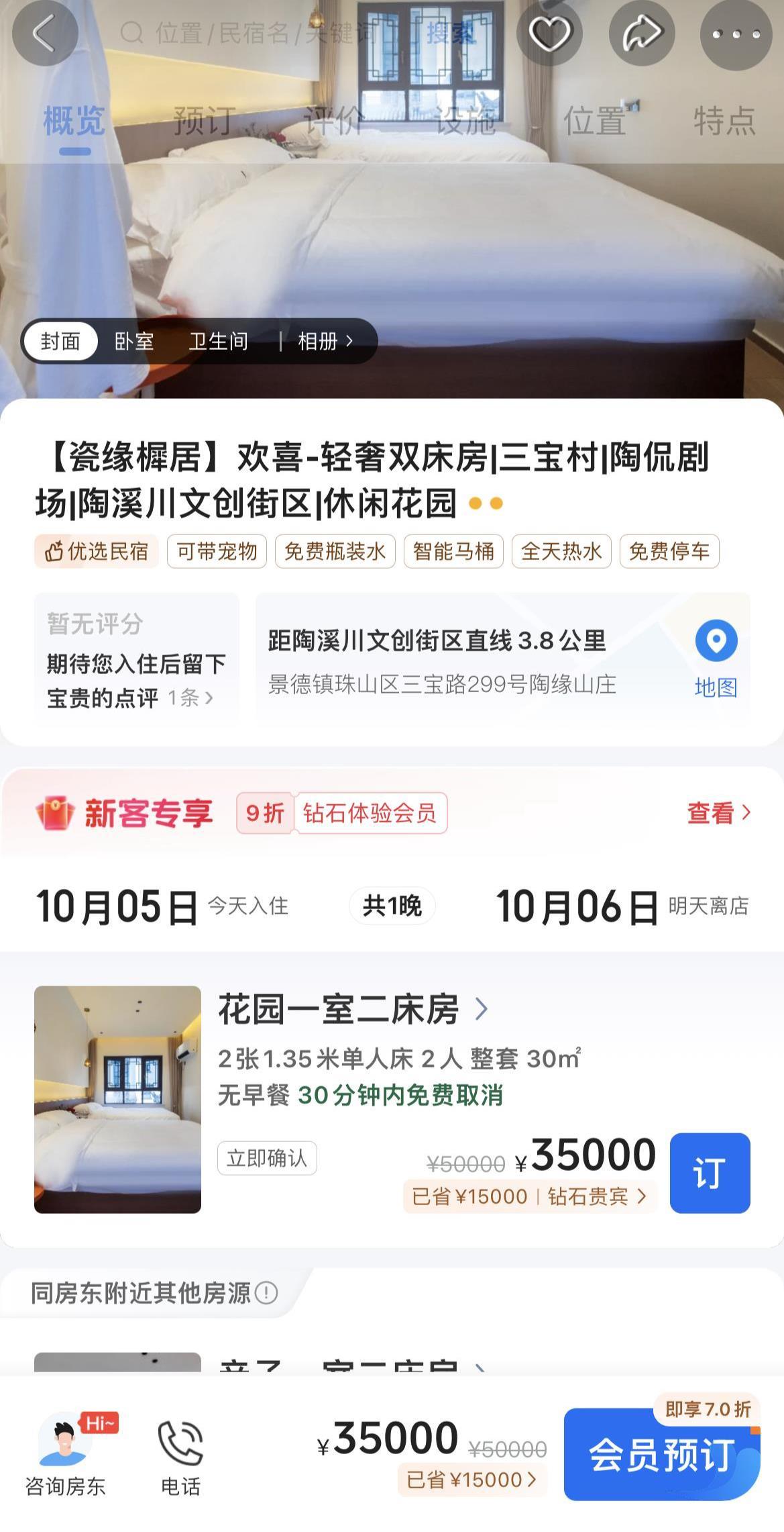 Jimu News Wang Can Can Can Reporter,位于江西省Jingdezhen的两居室家庭房屋,通常少于1,000元。在国庆假期期间,某些平台上的价格为35,000元。游客质疑价格是如此的丑闻。 10月5日,一名JIMU新闻记者在该申请中致电寄居在Ciauan Xiju,并选择在10月5日进行注册。在此页面上,家庭房间在花园里有一个和两个房间的房间,每晚有50,000 EAN价格,会员价格为每晚35,000年。此页面显示,房间的完整组为30平方米,两张单独的床为1.35米,没有早餐。记者看到,在全国的假期中,住宿加早餐旅馆的其他房间的价格约为每晚1000元,只有这个房间非常昂贵。在非平淡的假期上,最小的房间每晚的价格为365元,而昂贵的房间每晚的价格为1188元。在5点的早晨,一位记者向家庭房的所有者咨询了昂贵的房子。另一方表示,他不能出售如此高的35,000元的价格。 “那个房间是每月订阅的双普通房间,每天的价格不到1,000元。老板还说他接受了平台上的价格。平台上房间的每日价格根据流量进行调整。如果房间出售,家庭房将告诉您平台。然后,记者咨询了平台的客户服务,并说工作人员没有在B&B中找到35,000元的房间。记者将相关的屏幕截图发送给Servicio给客户,大约30分钟后,价格上涨,因为“这是某人在此房间中进行了审查的东西,因此其他客户不会使储备金Erro成为储备r。”